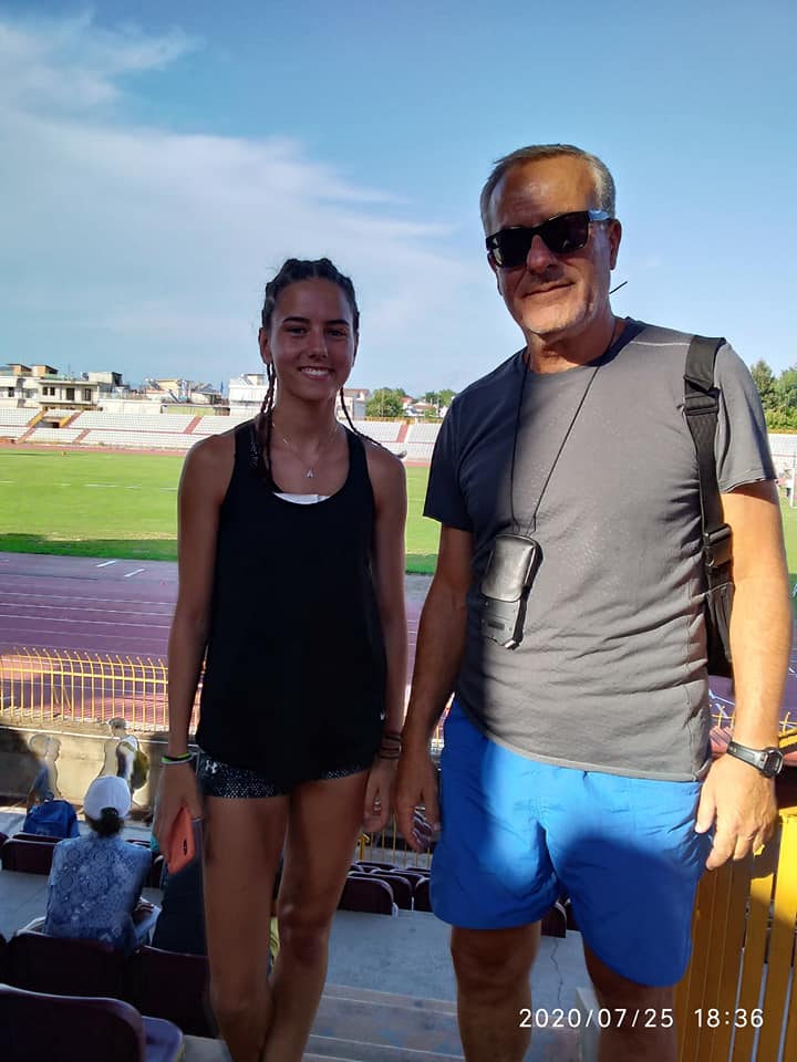 Χαρούμενος κι εγώ ως προπονητής της αλλά θα ήθελα να μην ξεχνάτε κάτι. Είναι το μόνο κορίτσι στην Ελλάδα που κάνει πρωταθλητισμό (όχι αθλητισμό) και γυμνάζεται σε χωμάτινο στίβο και σε γήπεδο χωρίς όργανα. Εύχομαι -για τις νέες γενιές -αυτό κάποτε να αλλάξει».....