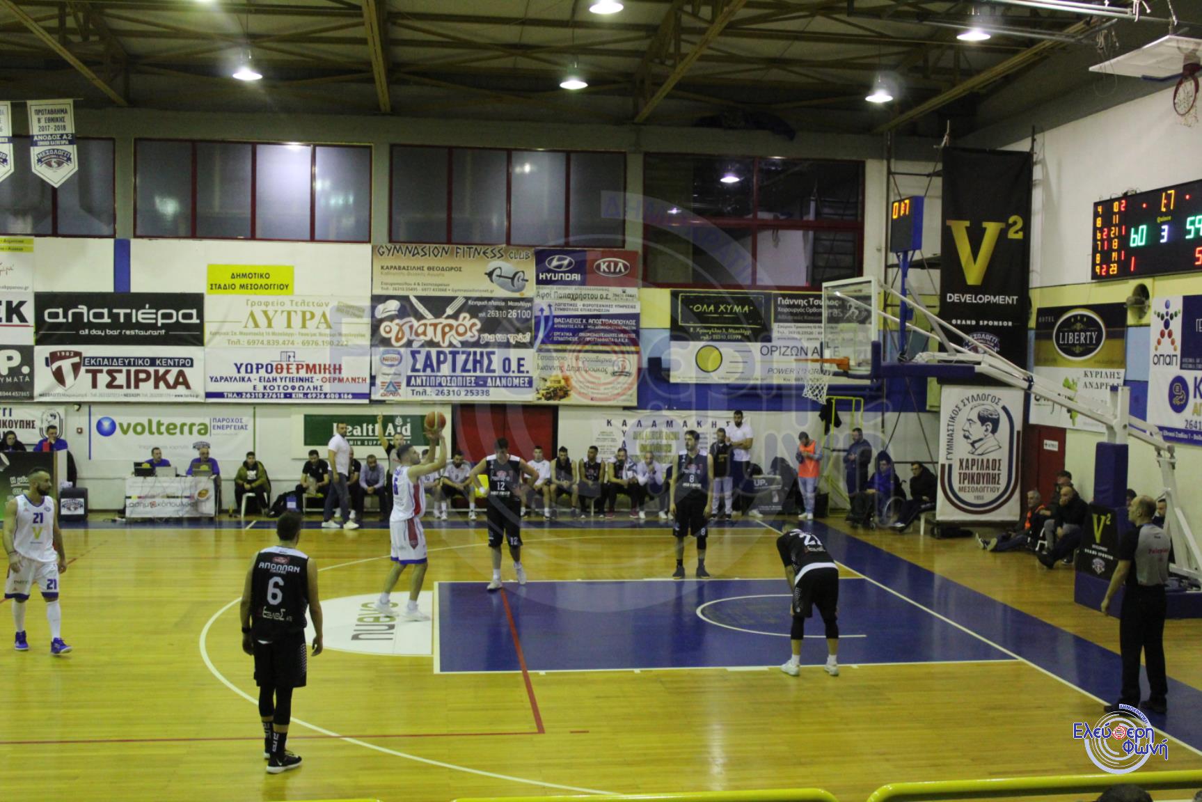 Παρόλο που η ψυχρολουσία της παράτασης στο τέλος και του 4ου δεκάλεπτου «μύριζε» αχνά λίγη απογοήτευση και κούραση για μια ακόμη φορά ο Ντίνος Καλαμπάκος και ο συνεργάτης του Ηλίας Μούτσιος έδωσαν την χαριστική βολή στους φιλοξενούμενους από την Πάτρα και η συνεργασία όλων έδωσε το επιθυμητό αποτέλεσμα της νίκης για την ομάδα Μεσολογγίου.