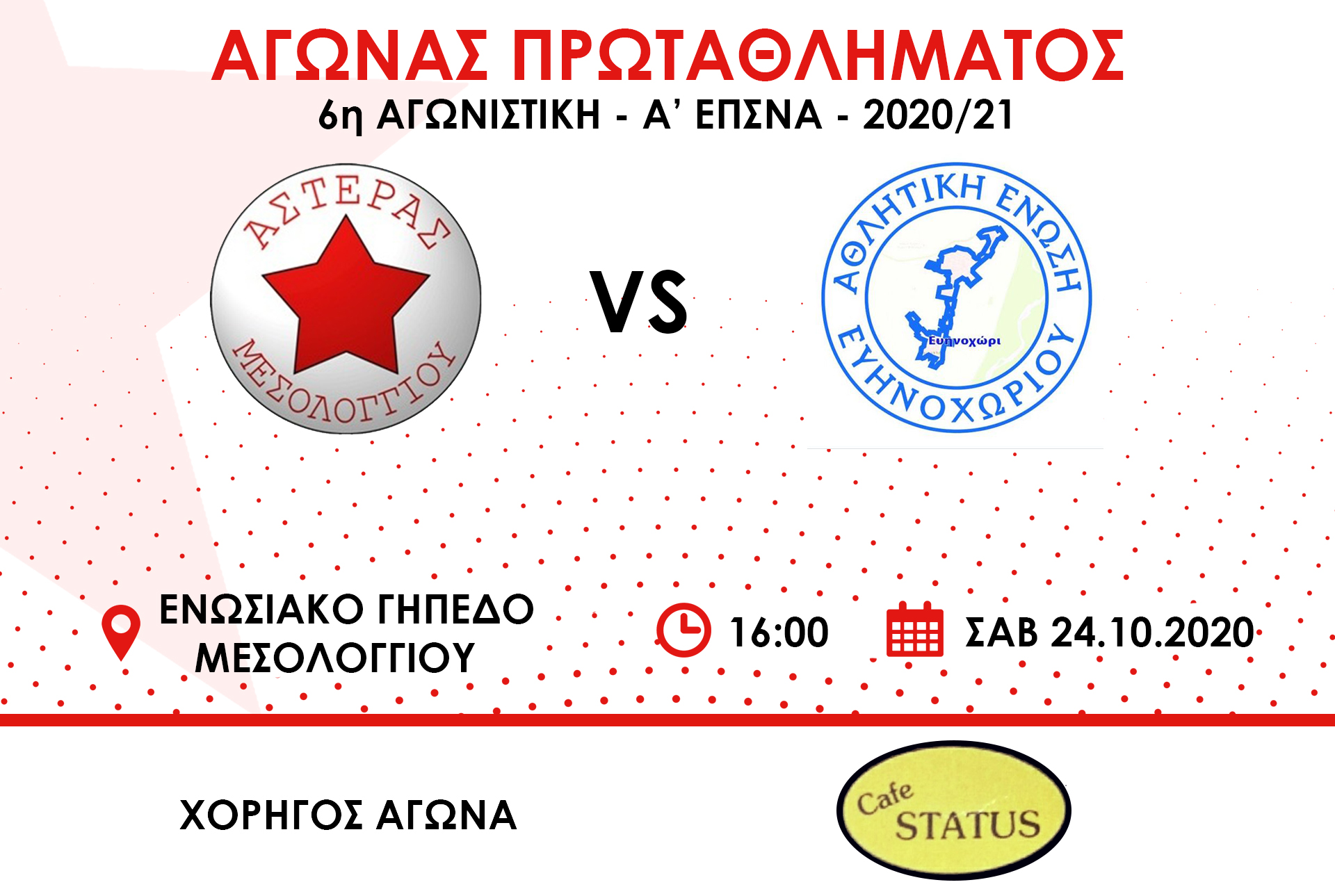 Χορηγός του αγώνα είναι το Καφέ Status.