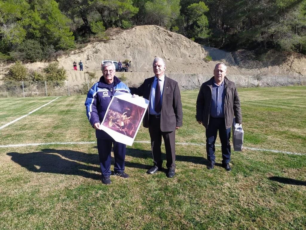 Ο αντιδήμαρχος του δήμου της Ιεράς πόλης Μεσολογγίου κ. Νικόλαος Καραπάνος απένειμε  στο σύλλογο των παλαίμαχων της Πάτρας αναμνηστική πλακέτα.