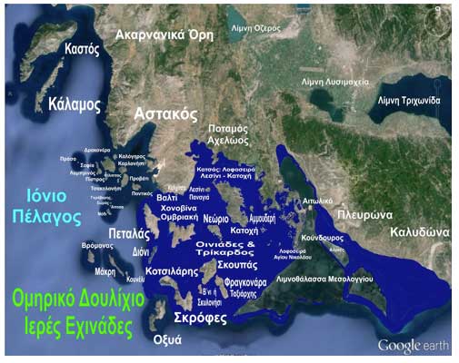 Κατά τη μελέτη των αρχαίων και νεωτέρων ιστορικών πηγών διαπίστωσε ότι από τις ΕΧΙΝΑΔΕΣ και το ΔΟΥΛΙΧΙ ο βασιλιάς ΦΥΛΕΑΣ έλαβε μέρος στο κυνήγι του ΚΑΛΗΔΩΝΙΟΥ ΚΑΠΡΟΥ. Βασιλιάς της ΚΑΛΗΔΩΝΑΣ ήταν ο ΟΙΝΕΑΣ, γιος του ΑΙΤΩΛΟΥ. Ίσως από τον ΟΙΝΕΑ έλαβαν το όνομα τους οι ΟΙΝΙΑΔΕΣ. Ο γιος του ΦΥΛΕΑ ο ΜΕΓΗΣ έλαβε μέρος στον Τρωικό πόλεμο με 40 μαύρα καράβια και πλήρωμα 2000 ανδρών.