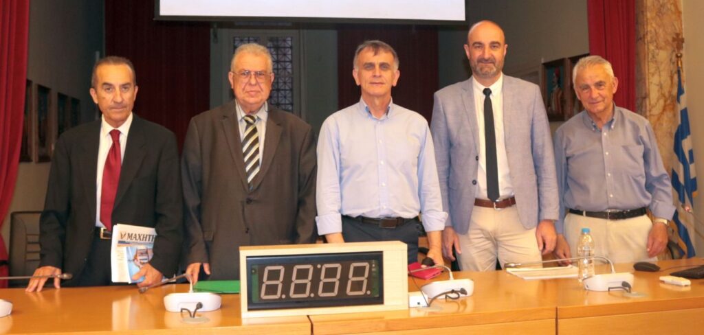 (Από αριστερά: ο δημοσιογράφος Νίκος Κανής, ο συνταξιούχος γυμνασιάρχης Κων/νος Ε. Ρόμπολας, ο Διευθυντής του 7ου Γυμνασίου Αγρινίου φιλόλογος κ. Ευθύμιος Αδάμης, ο Διευθυντής του 4ου ΓΕΛ Αγρινίου, ο Διδάσκων Πανεπιστημίων Ιωαννίνων και Θεσσαλίας Δρ. Παναγιώτης Κοντονάσιος και ο συγγραφέας Λάζαρος Τσόλκας).