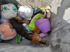 Εχθές το βράδυ γύρω στις 11:30 κάποιος φιλόζωος, πιθανότατα «κυνηγός» (σύμφωνα με όσα δήλωσαν οι υπεύθυνες της φιλοζωικής) αποφάσισε να κάνει ένα αξέχαστο δώρο στο σκυλάκι του, πετώντας το, στο κάδο σκουπιδιών.