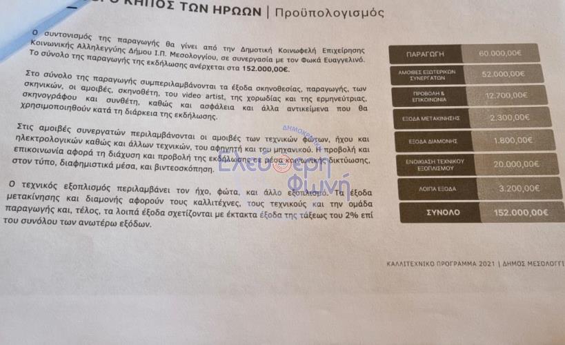 Όπου συγκεκριμένα αναγράφεται, το όνομα γνωστής ερμηνεύτριας και της χορωδίας «κόρες» (λες και οι γυναίκες της χορωδίας που τόσα χρόνια τραγουδούσαν εθελοντικά, μας χαλούσαν την εικόνα που ήθελαν να προβάλλουν, οι αυτοαποκαλούνται 11 υπέροχοι του Δήμου και έπρεπε οι γυναίκες να αντικατασταθούν από τις κόρες), ηθοποιοί που θα αντικαθιστούσαν τον τοπικό Καψάλη (κι αυτός και όλοι όσοι πέρασαν πάλι εθελοντικά συμμετείχαν όλα αυτά τα χρόνια) και μέχρι την τελευταία ημέρα από τις πρόβες φωτογραφίες από υπερπαραγωγές φωτισμού, τηλέφωνα για φωτογραφίες των μικρών μαθητριών για το αν περνάνε στο επόμενο κάστινγκ του event, και τέλος η ένταση μεταξύ Δημοτικής Αρχής και Συλλόγων για τοποθέτησή των συλλόγων ως κομπάρσων στις εκδηλώσεις.