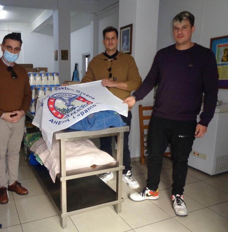Xριστούγεννα 2021. Αντιπροσωπεία του τμήματος της Nαυπάκτου, «AHEPA LEPANTO 1571»,αποτελούμενη από τον πρόεδρό της, κ.Άγγελο Σταυρόπουλο, καθώς και τους αδερφούς Νικόλαο και Συμεών Αρβανιτίδη, μέλη του Διοικητικού της Συμβουλίου, επισκέφτηκαν το χώρο των Συσσιτίων, προσφέροντας ανιδιοτελώς τρόφιμα για την ενίσχυση της Δομής, καθώς και είδη πρώτης ανάγκης για τον συγκεκριμένο χώρο.