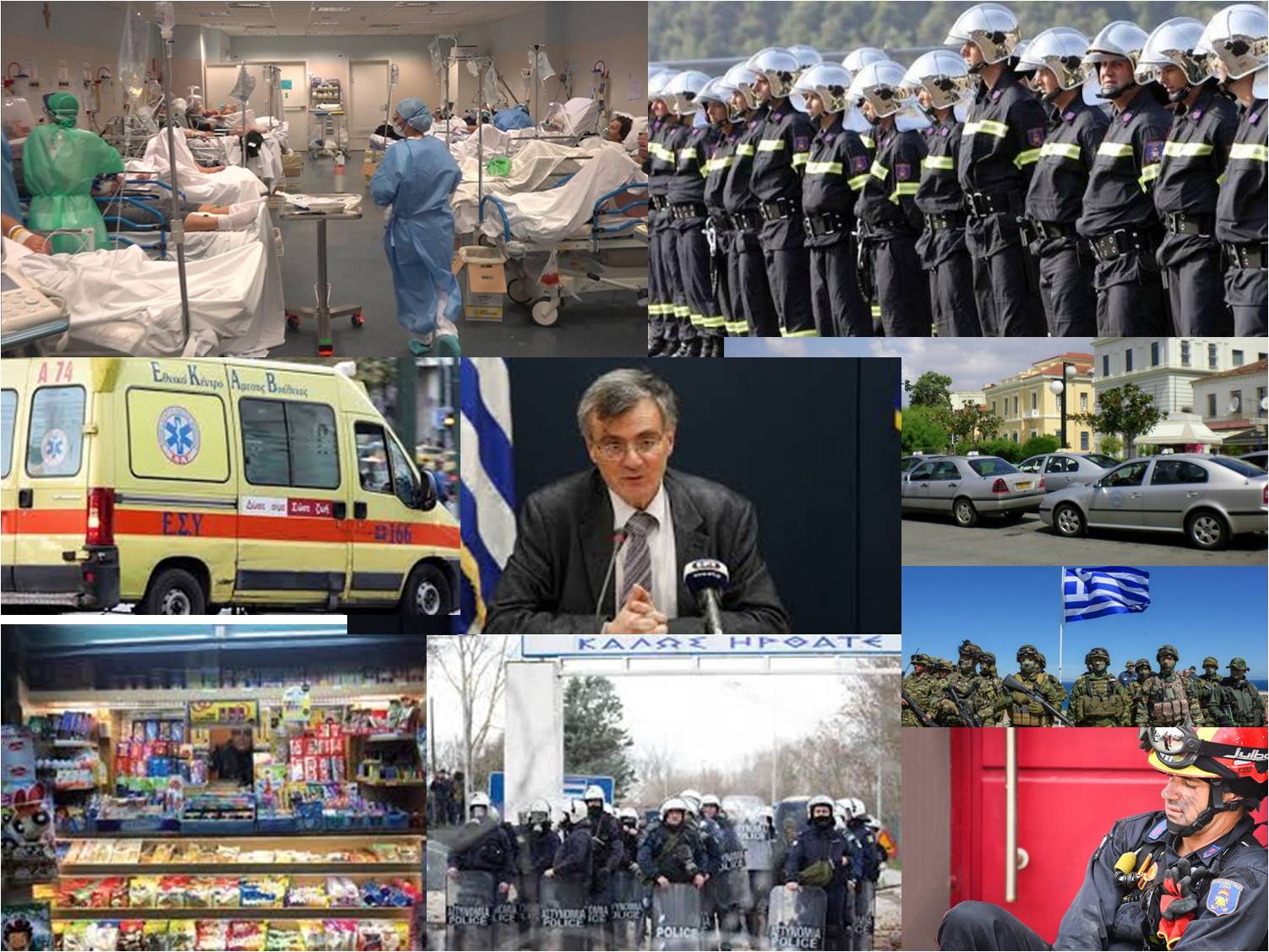 Είναι και κάποιοι άλλοι με στολές, που κινδυνεύουν και αυτοί, αναφέρομαι στους αστυνομικούς, στους πυροσβέστες,στην αεροπορία, στο στρατό και στο λιμενικό,  που ριψοκινδυνεύουν την ζωή τους για να μας προστατεύσου και να μας σώζουν, το κάνουν πάντα αλλά και τώρα το κάνουν εις διπλούν.