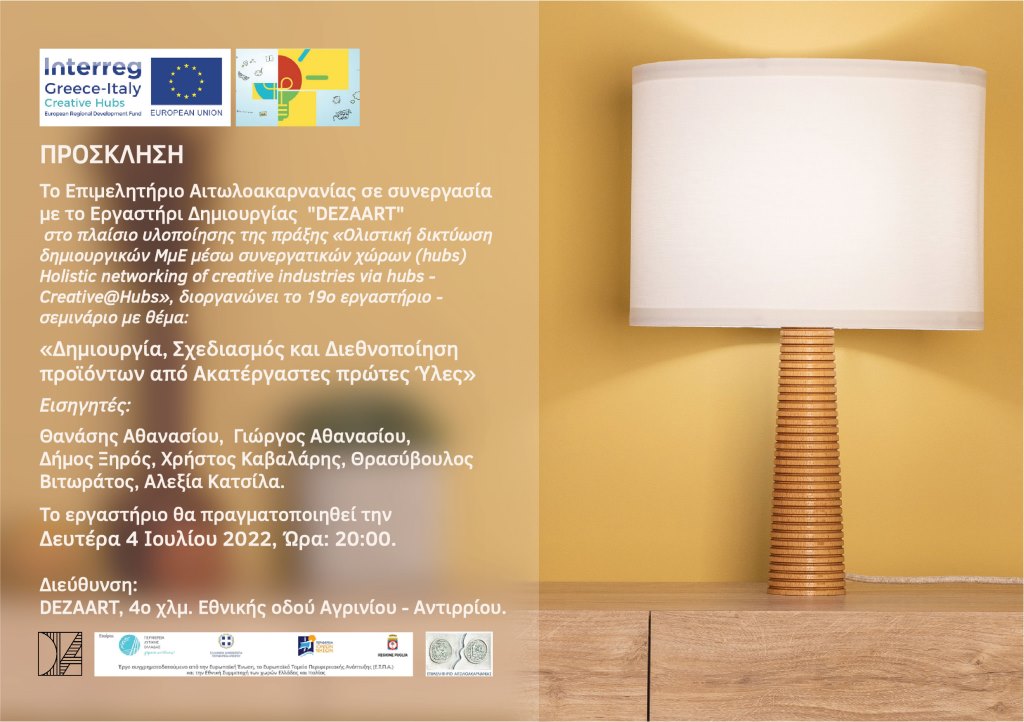 Το Επιμελητήριο Αιτωλοακαρνανίας σε συνεργασία με το Εργαστήρι Δημιουργίας " DEZAART "στο πλαίσιο υλοποίησης της πράξης