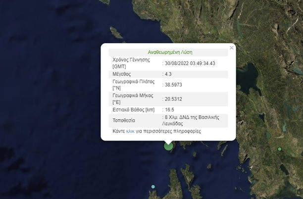 Σεισμός 4,3 Ρίχτερ σημειώθηκε στις 7 το πρωί της Τρίτης στη Λευκάδα.
