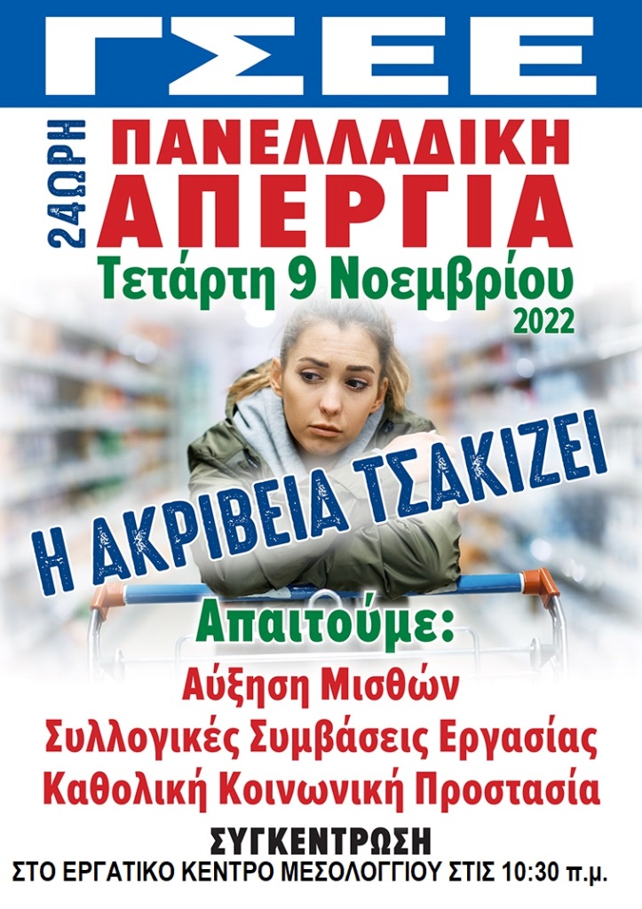 την Τετάρτη 9 Νοεμβρίου 2022 σε μαζική συμμετοχή στις 10:30 στο χώρο του Εργατικού Κέντρου Μεσολογγίου.