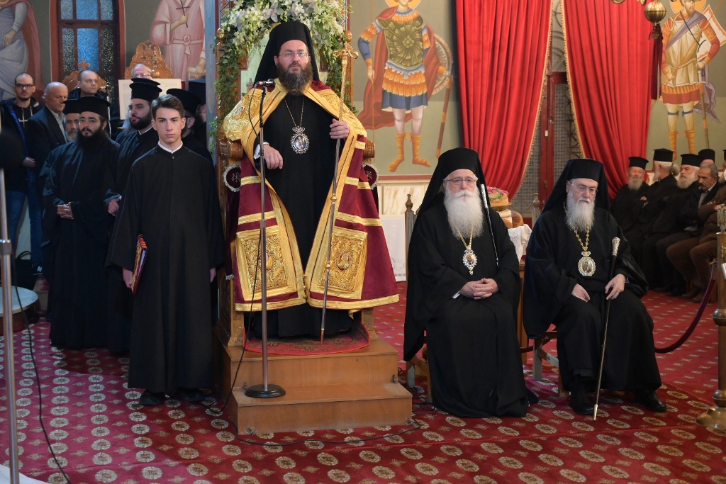 Στον πολυαρχιερατικό Εσπερινό που τελέσθηκε το απόγευμα της παραμονής χοροοστάτησε ο Μητροπολίτης Πολυανής και Κιλκισίου κ. Βαρθολομαίος και συγχοροστάτησαν οι Μητροπολίτες Δημητριάδος και Αλμυρού κ. Ιγνάτιος, Κορίνθου κ. Διονύσιος, Μεσσηνίας κ. Χρυσόστομος, Νέας Ιωνίας και Φιλαδελφείας κ. Γαβριήλ, Νέας Κρήνης και Καλαμαρίας κ. Ιουστίνος και ο εορτάζων Ποιμενάρχης μας κ. Δαμασκηνός.