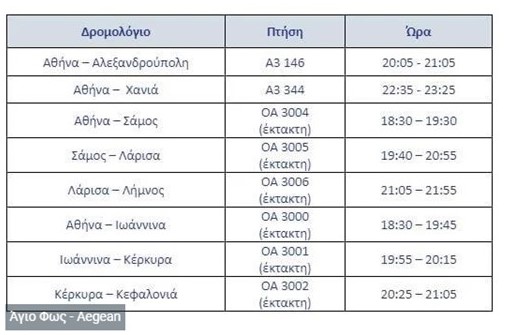 Ειδικότερα, το Μεγάλο Σάββατο το πρόγραμμα των προγραμματισμένων και έκτακτων πτήσεων της AEGEAN και της Olympic Air για τη μεταφορά του Αγίου Φωτός, διαμορφώνεται ως εξής: