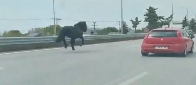 Σε... ιπποδρόμιο μετατράπηκε η Εθνική Οδός Θεσσαλονίκης - Μουδανιών την Πέμπτη, όταν έκπληκτοι οι οδηγοί των αυτοκινήτων συνειδητοποίησαν ότι κινούνται στον αυτοκινητόδρομο μαζί με άλογα.