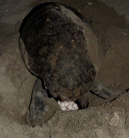 Το ερπετό βγήκε από τη θάλασσα και αφού διέσχισε μόλις μερικά μέτρα από εκεί που σκάει το κύμα, προσπάθησε να επιλέξει το σημείο ώστε να ξεκινήσει τη διαδικασία της ωοτοκίας.