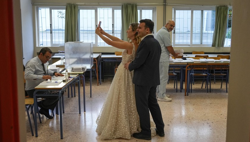 Η άσκηση του εκλογικού δικαιώματος είναι πολύ σοβαρή υπόθεση και ένα νεόνυμφο ζευγάρι το απέδειξε με το πιο περίτρανο τρόπο, καθώς πήγε κατευθείαν μετά το γαμήλιο γλέντι σε εκλογικό κέντρο της Κηφισιάς.
