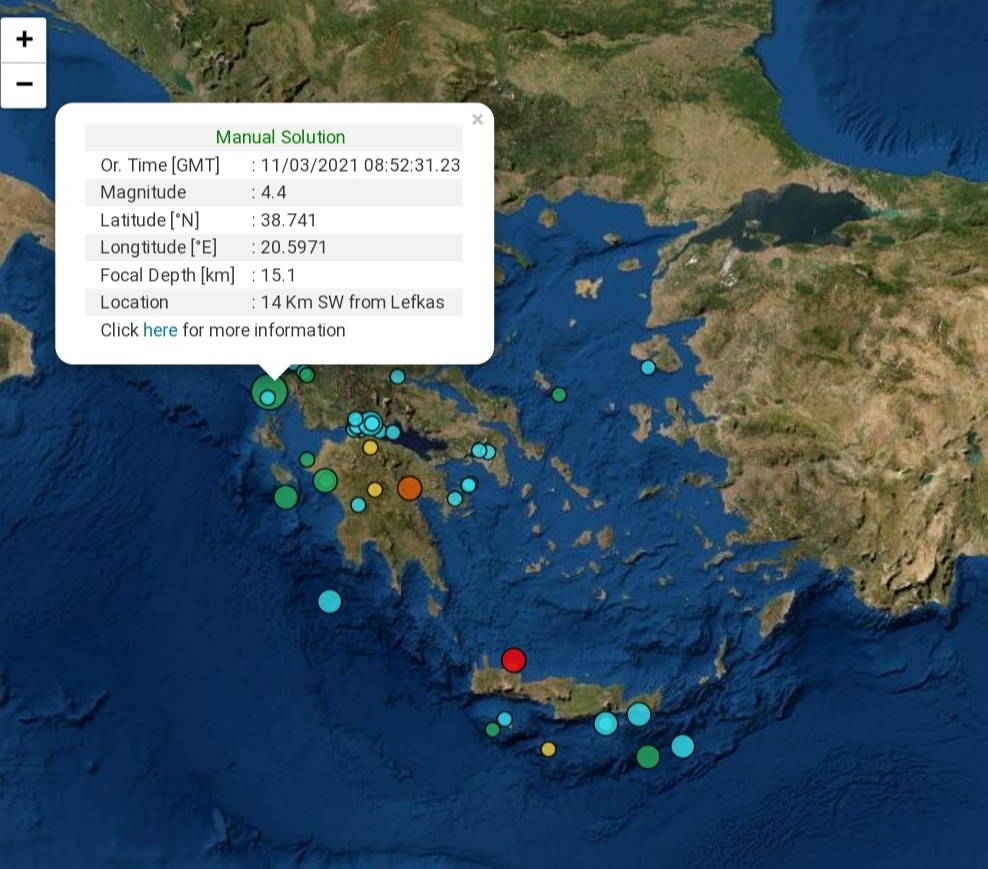 Σύμφωνα με το Γεωδυναμικό Ινστιτούτο Αθηνών στις 08:52 σημειώθηκε σεισμική δόνηση 4,4 της κλίμακας ρίχτερ, 14 χιλιόμετρα νοτιοδυτικά της Λευκάδας.