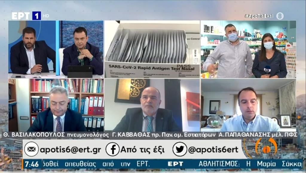 «Παραμένουμε στην πρώτη γραμμή δίπλα στους πολίτες» δήλωσε ο Θανάσης Παπαθανάσης Πρόεδρος του Φαρμακευτικού Συλλόγου Αιτωλοακαρνανίας και μέλος του ΔΣ του Πανελλήνιου Φαρμακευτικού Συλλόγου στην εκπομπή της ΕΡΤ1 «Από τις έξι» με τους δημοσιογράφους Δημήτρη Κοτταρίδη και Γιάννη Πιτταρά για το θέμα που προέκυψε με τη διάθεση των self tests.