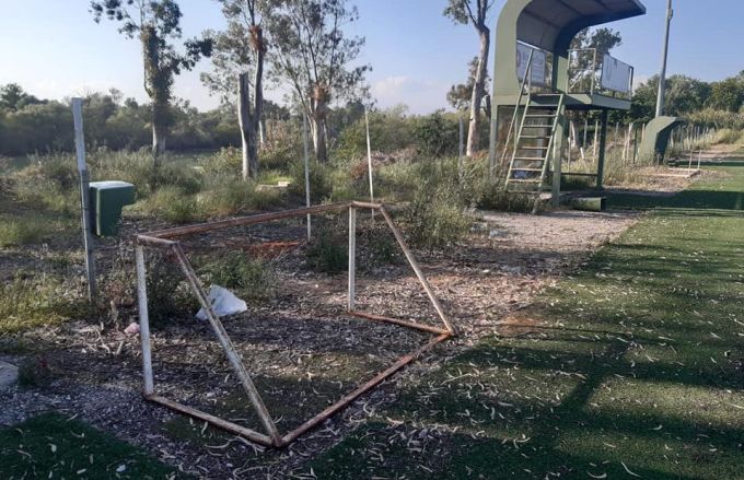 α. της υψηλής επικινδυνότητας του αγωνιστικού χώρου (υπάρχουν παντού λακκούβες, ο πλαστικός τάπητας έχει αφαιρεθεί σε πολλά σημεία και δεν υπάρχουν δοκάρια στην εστία), β. τα αποδυτήρια και οι τουαλέτες είναι πλέον εστία μόλυνσης, ενώ οι παντού υπάρχουσες ρωγμές καθιστούν επικίνδυνους τους χώρους αυτούς για την σωματική ακεραιότητα των χρηστών,