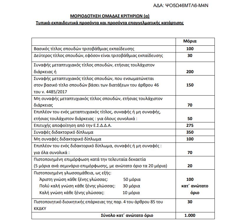 Πώς μοριοδοτούνται τα τυπικά προσόντα: