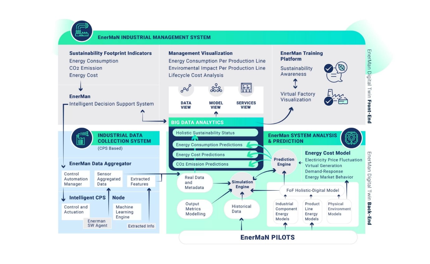 Στα πλαίσια του έργου, σχεδιάζεται μια μηχανή ευφυούς υποστήριξης αποφάσεων, η οποία αποτυπώνει τις προβλεπόμενες ενεργειακές τάσεις και αυτοματοποιημένα εκτιμά αν αυτές οι τιμές ταιριάζουν με μια σειρά από προαποφασισμένους δείκτες απόδοσης ενεργειακής βιωσιμότητας. Αν οι δείκτες δεν ικανοποιούνται, η υπολογιστική υποδομή του ΕNERMAN προτείνει και υλοποιεί αλλαγές στις διαδικασίες ελέγχου της γραμμής παραγωγής του εργοστασίου εφαρμόζοντας έτσι έναν ευέλικτο βρόγχο ελέγχου όλων των διεργασιών του εργοστασίου, ο οποίος είναι πάντα ενεργειακά ενημερωμένος με βέλτιστο τρόπο.