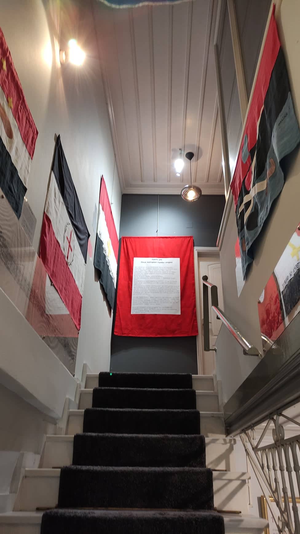 Μύρισε την ευωδιά των οραμάτων τους, ένιωσε την κάθε ανάσα που γράφτηκε στην βελονιά κάθε σημαίας, άκουσε τα ραμμένα τραγούδια, τα υφασμένα παράπονα, τις προσεκτικά διπλωμένες προσευχές τους και τις ξαναδημιούργησε παραδίδοντάς τες στον επισκέπτη της έκθεσης.