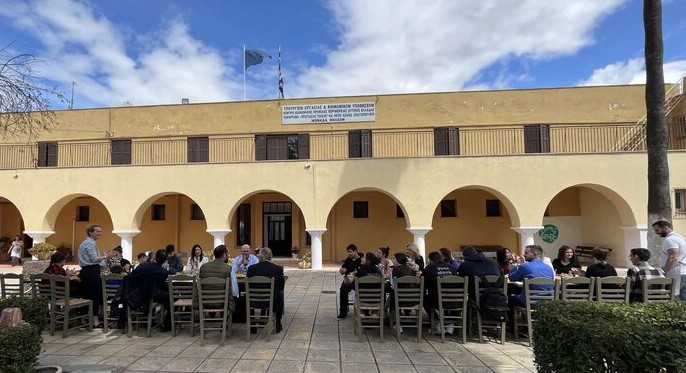 Μια μεγάλη τραπεζαρία στήθηκε στο προαύλιο της Μονάδας Θηλέων που βρίσκεται στην Πάτρα και γευμάτισαν όλοι μαζί, παρουσία του Γενικού Γραμματέα Κοινωνικής Αλληλεγγύης και Καταπολέμησης της φτώχειας, Γιώργου Σταμάτη, αλλά και της Γενικής Γραμματέως Ενέργειας και Ορυκτών Πρώτων Υλών, Αλεξάνδρας Σδούκου.