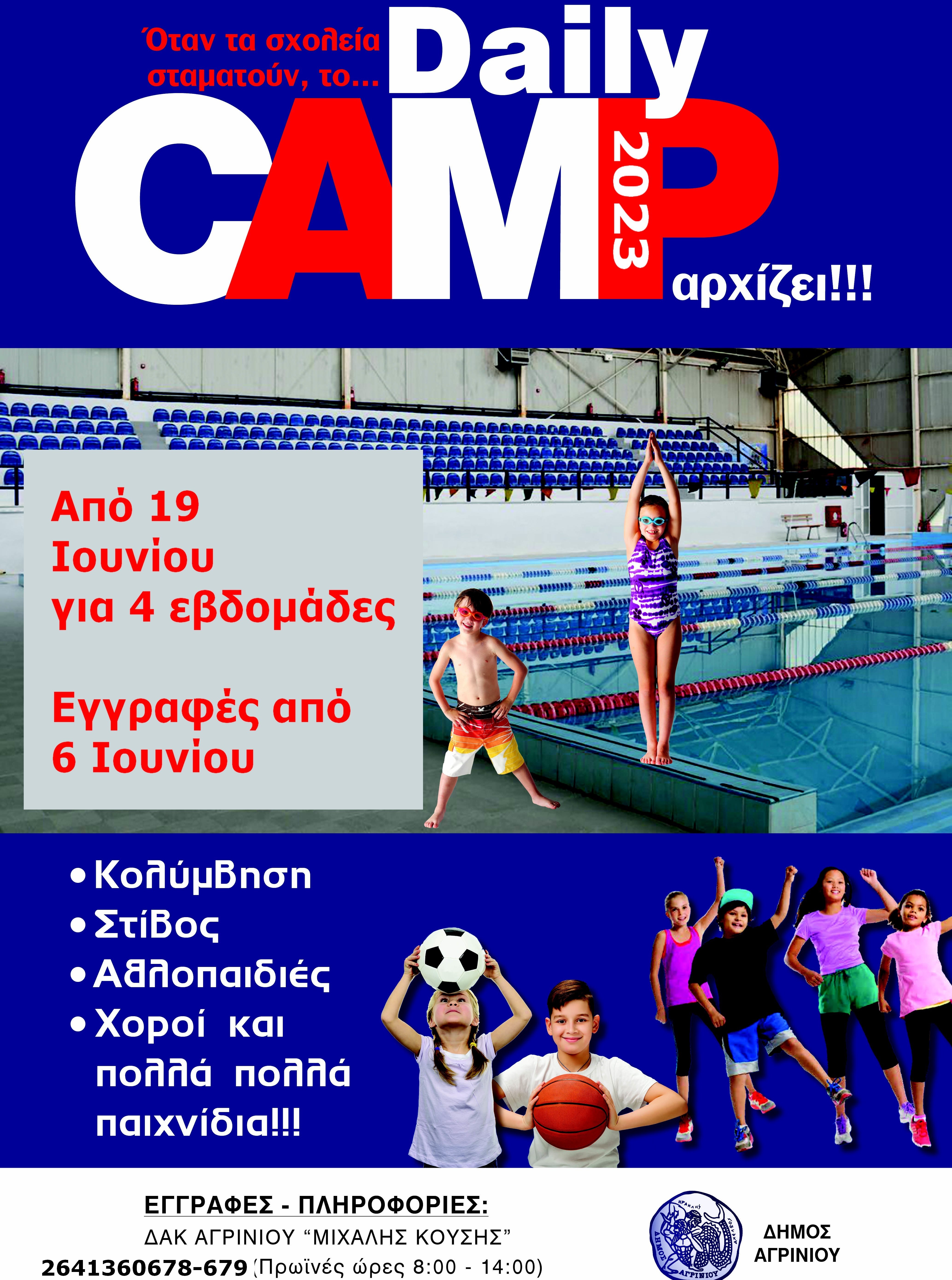 Στις 6 Ιουνίου ξεκινούν οι εγγραφές για συμμετοχή στο Daily Camp 2023 που διοργανώνεται στο Δημοτικό Αθλητικό Κέντρο Αγρινίου «Μιχάλης Κούσης».
