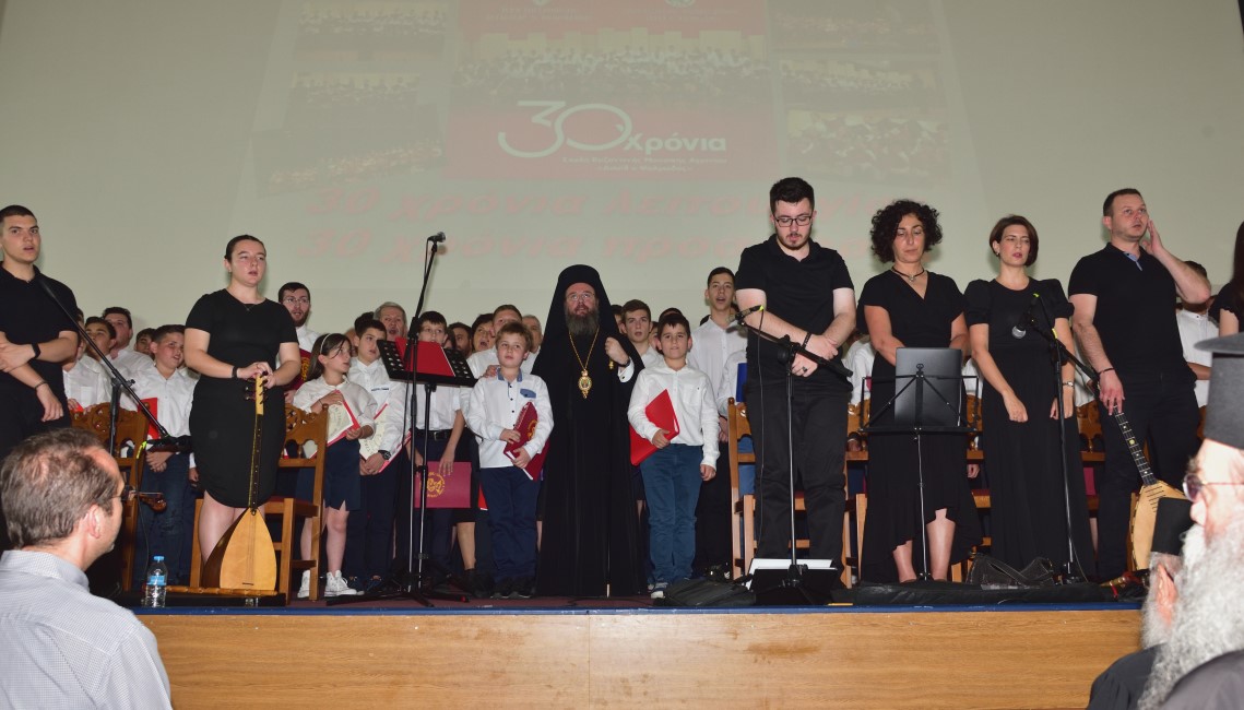 Σε άλλο σημείο της ομιλίας του ανέφερε: «Η Σχολή Βυζαντινής Μουσικής Αγρινίου «Δαυίδ ο Ψαλμωδός», της Ιεράς Μητροπόλεώς μας, συμπληρώνει φέτος 30 χρόνια λειτουργίας! 30 χρόνια λειτουργίας ως Σχολή αναγνωρισμένη από το κράτος, δηλαδή με Πρόγραμμα Σπουδών και Διδακτέα ύλη που είναι καθορισμένη σύμφωνα με τα αναλυτικά προγράμματα του Υπουργείου Πολιτισμού. 30 χρόνια προσφοράς στην τοπική και την ευρύτερη κοινωνία!