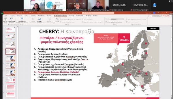 Σε αυτό το πλαίσιο ολοκληρώθηκε με επιτυχία την Τετάρτη 02 Αυγούστου 2023, η εναρκτήρια συνάντηση του ευρωπαϊκού έργου CHERRY που στοχεύει στη βελτίωση των περιφερειακών και τοπικών πολιτικών που απευθύνονται στους κλάδους του πολιτισμού και της δημιουργικότητας για την ενίσχυση της ανθεκτικότητάς τους μετά την κατάσταση έκτακτης ανάγκης στον τομέα της υγείας λόγω της νόσου COVID-19, λαμβανομένης υπόψη της διττής μετάβασης (πράσινη και ψηφιακή), για την: