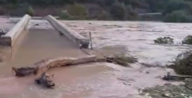 Στην περιοχή Αυλάκι του Ορεινού Βάλτου η Γέφυρα καλύφθηκε σήμερα από νερό. Κορμοί, ξύλα και άλλα υλικά παρασύρθηκαν από την ορμή του νερού.