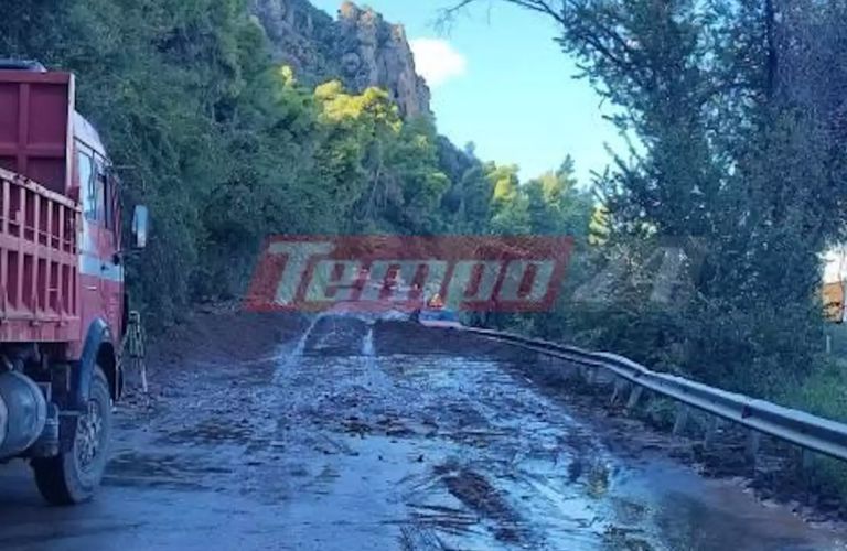 Η καταρρακτώδης βροχή, που έφερε η κακοκαιρία, έπληξε την Παλαιά Εθνική Οδό Πατρών-Αθηνών και ο δρόμος πλημμύρισε από λάσπη και πέτρες μετά τα διόδια του Ελαιώνα.