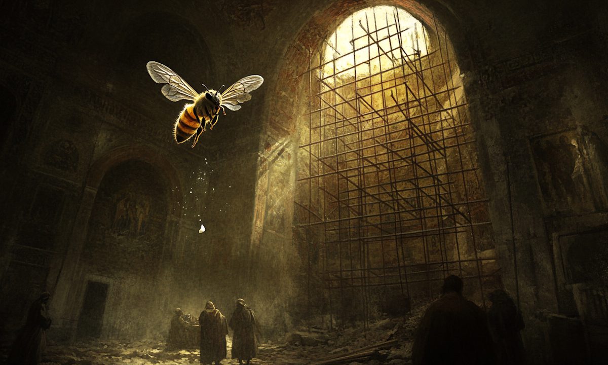 Η γεωμετρία της μέλισσας, έλεγαν, ξεπερνούσε και του πιο έμπειρου τεχνίτη. Και τότε ο αρχιμάστορας φώναξε: «Θα χτίσουμε τον ναό όπως η μέλισσα φτιάχνει την κυψέλη της· με αρμονία, σοφία και ταπεινότητα».