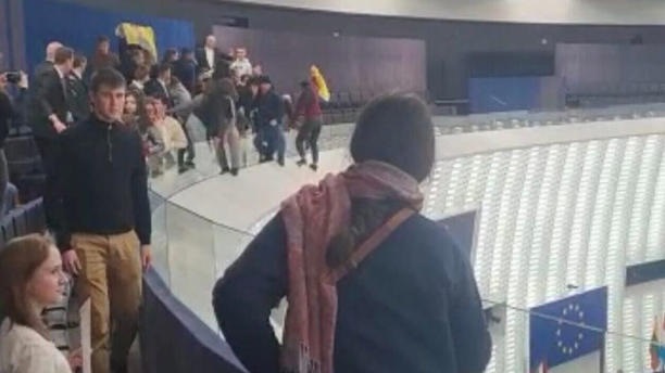 Μια ομάδα Κούρδων που διαμαρτύρονται για το θέμα του ηγέτη τους Αμπντουλαχ Οτζαλάν -σήμερα είναι η επέτειος της σύλληψης του από τις τουρκικές Αρχές - με κάποιον τρόπο και παρακάμπτοντας τα μέτρα ασφαλείας, μπήκαν μέσα στην αίθουσα της Ολομέλειας του Ευρωκοινοβούλιο στο Στρασβουργο.