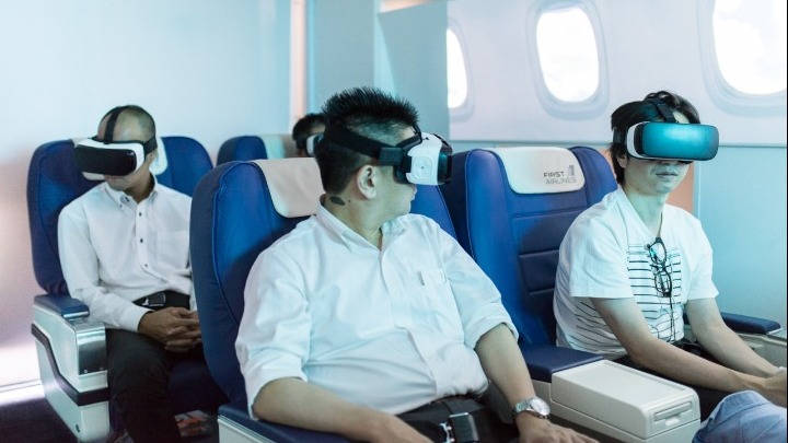 Οι εικονικοί ταξιδιώτες κάθονται στην πρώτη θέση ή στην ‘business class’ σε μια προκατασκευασμένη καμπίνα αεροσκάφους όπου τους σερβίρουν γεύμα και ποτά, ενώ γύρω τους υπάρχουν επίπεδες οθόνες με τις οποίες έχουν την εντύπωση ότι βλέπουν έξω, από το παράθυρο του αεροπλάνου, χαζεύοντας τα σύννεφα.