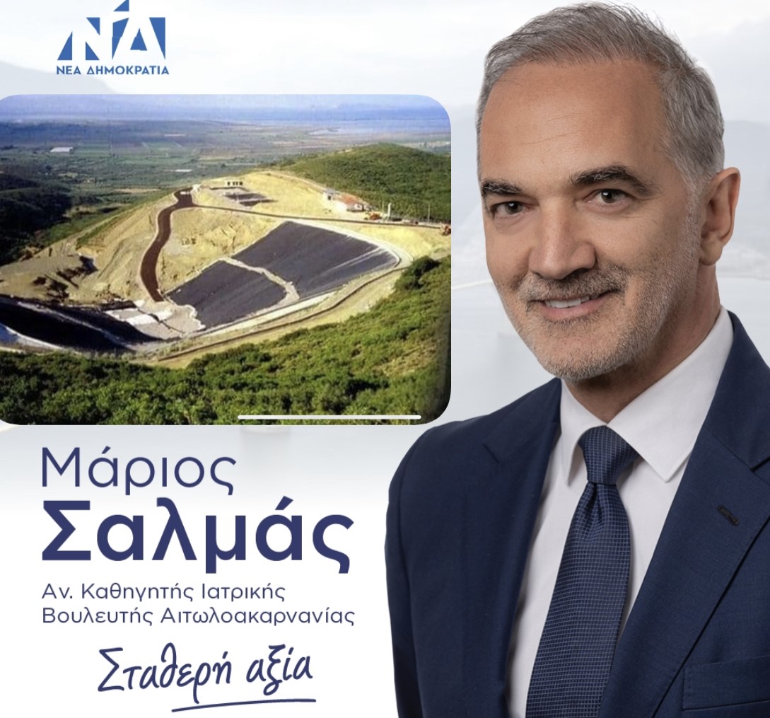 Ο καθηγητής Μάριος Σαλμάς και υποψήφιος Βουλευτής Αιτωλοακαρνανίας αναφορικά με την δρομολόγηση της σύμβασης για το ΧΥΤΑ Μεσολογγίου, έκανε την ακόλουθη δήλωση. «Με μεγάλη μου χαρά ενημερώθηκα για την έγκριση από το Ελεγκτικό Συνέδριο της σύμβασης κατασκευής του ΧΥΤΑ Μεσολογγίου. Είναι ένα έργο το οποίο θα δώσει οριστική λύση στην αποκομιδή των σκουπιδιών στο δήμο της Ιεράς Πόλεως.
