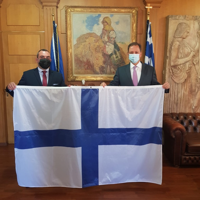 Ο Υπουργός δέχθηκε με χαρά το αντίγραφο της σημαίας, το οποίο, όπως είπε, κατά το Σαββατοκύριακο του επετειακού εορτασμού της Εξόδου του Μεσολογγίου, θα ανεμίζει έξω από το ΥΠΑΑΤ.