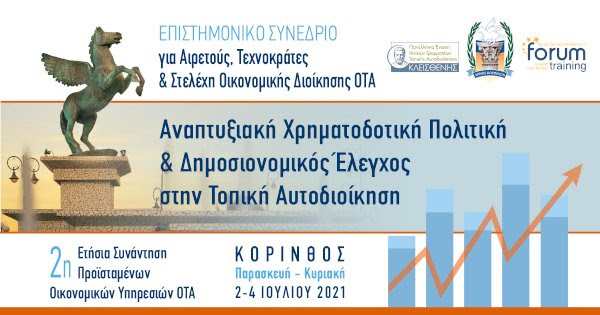 Το Συνέδριο έχει θέμα: «Αναπτυξιακή Χρηματοδοτική Πολιτική & Δημοσιονομικός Έλεγχος στην Τοπική Αυτοδιοίκηση», και θα πραγματοποιηθεί στην Κόρινθο, 2 - 4 Ιουλίου 2021.