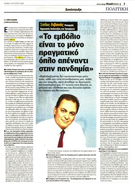 Ολόκληρη η Συνέντευξη του ΥΠΑΑΤ κ. Σπήλιου Λιβανού στη realnews και στον Γιώργο Σιαδήμα: