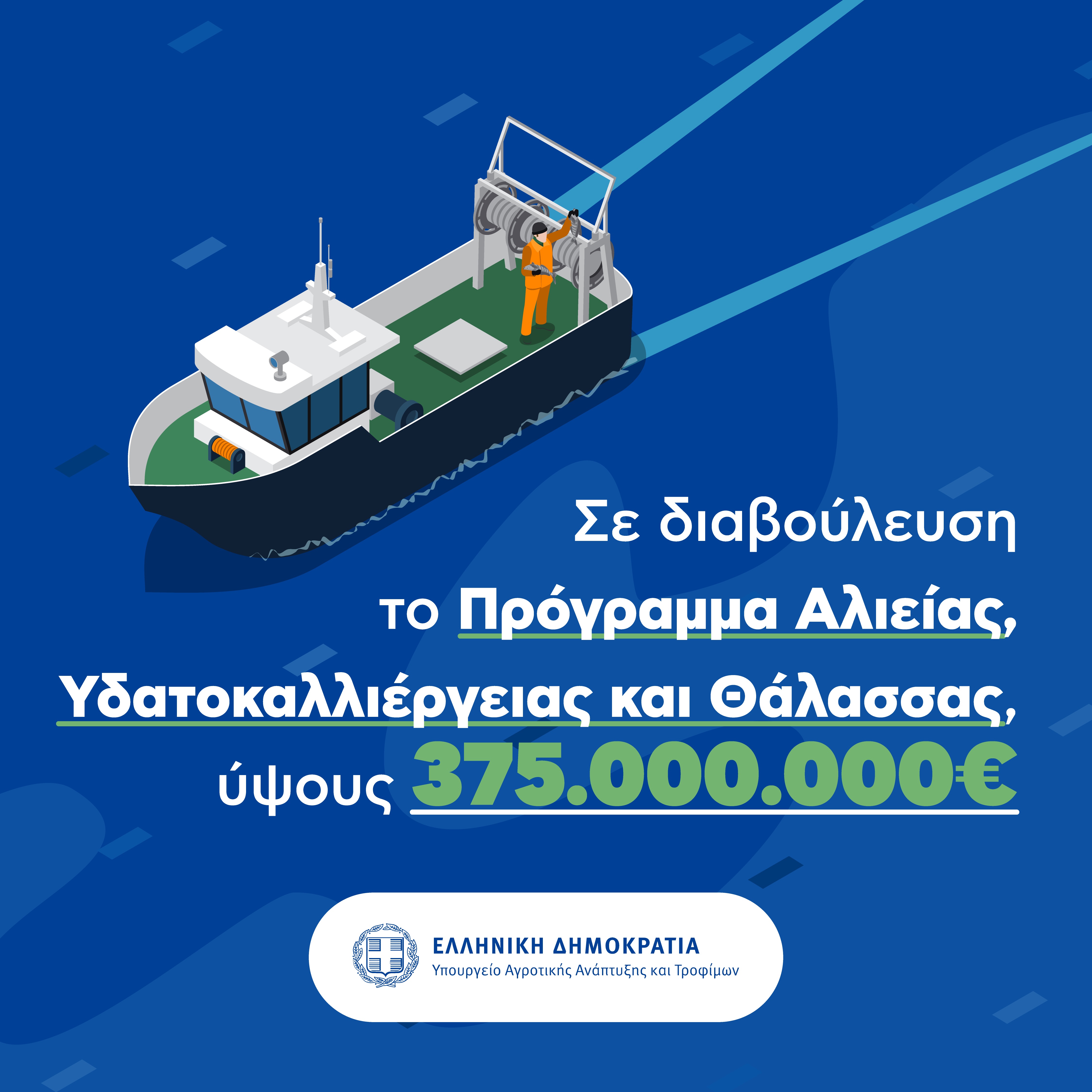 Δόθηκε στη δημοσιότητα το κείμενο διαβούλευσης του Προγράμματος Αλιείας, Υδατοκαλλιέργειας και Θάλασσας (ΠΑΛΥΘ) 2021-2027, ύψους 374.995.903 €., το οποίο θα χρηματοδοτηθεί από το Ευρωπαϊκό Ταμείο Αλιείας, Θάλασσας και Υδατοκαλλιεργειών (ΕΤΘΑΥ) για το οποίο έχει εκδοθεί ο Κανονισμός (ΕΕ) 1139/2021.