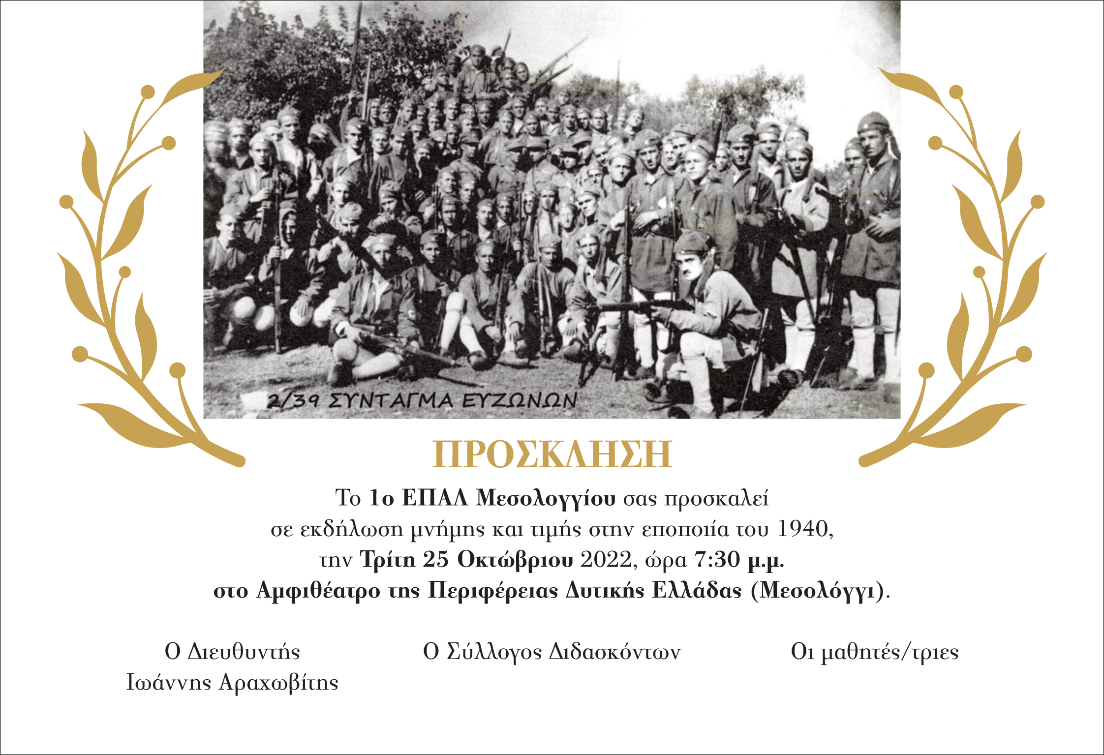 1ο ΕΠΑΛ Μεσολογγίου: Εκδήλωση μνήμης και τιμής στην εποποιία του 1940