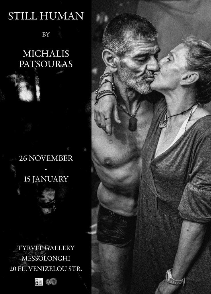 Η γκαλερί «Τύρβη» (Βενιζέλου 20 - Μεσολόγγι), σας καλεί το Σάββατο 26 Noεμβρίου, στις 7.30 μ.μ. στα εγκαίνια της έκθεσης του φωτογράφου Μιχάλη Πατσούρα, με τίτλο «Still Human».