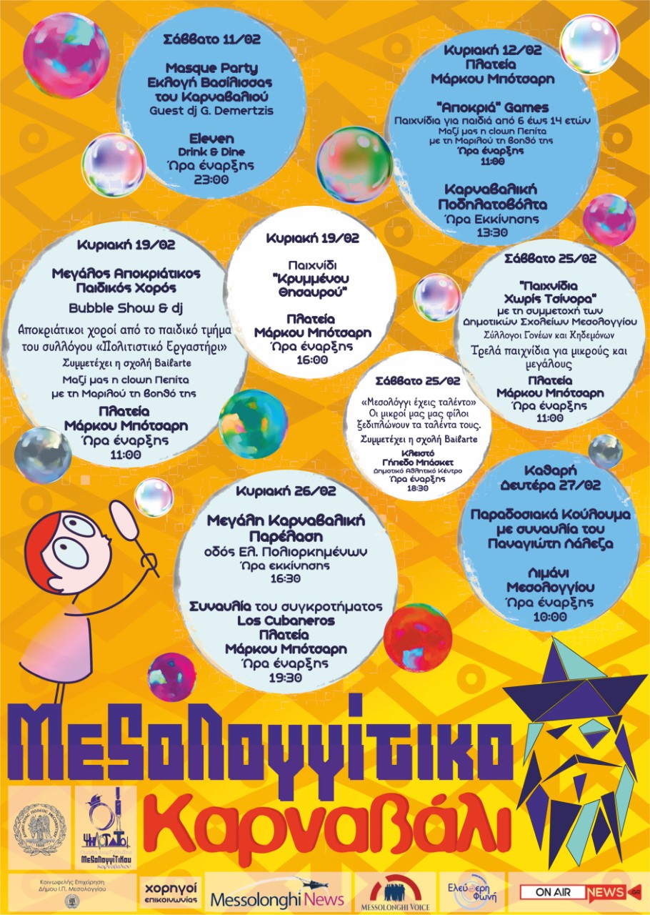 38ο Μεσολογγίτικο καρναβάλι: Πρόγραμμα Εκδηλώσεων