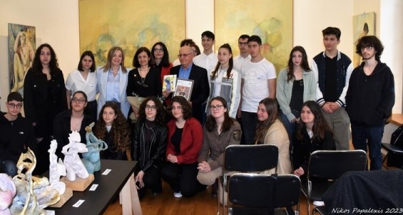 Την ίδια ημέρα το Κτίριο Χρυσόγελου είχε τη χαρά να υποδεχτεί στους χώρους του την Καλλιτεχνική Ομάδα της Χριστίνας Μπλαχούρα, «Art and heart» από το Αγρίνιο, απολαμβάνοντας την ξενάγηση του δημιουργού της έκθεσης «Γένεσις» Νίκου Ντούμα. Η ομάδα πλαισιωνόταν ειδικά από μαθητές όλων των βαθμίδων εκπαίδευσης συνοδευόμενοι από τους γονείς τους και τους εκπαιδευτικούς της καλλιτεχνικής ομάδας, εκφράζοντας τον ενθουσιασμό τους για τα αξιόλογα εικαστικά έργα με την ξεχωριστή ευαισθησία και έμπνευση. Με την παρούσα επίσκεψη ολοκληρώθηκε και η παρουσίαση της εν λόγω έκθεσης που έχαιρε της επισκεψιμότητας όχι μόνο πλήθους κόσμου που τίμησε πραγματικά τον καλλιτέχνη, αλλά και των σχολικών μονάδων της πρωτοβάθμιας και δευτεροβάθμιας εκπαίδευσης του Νομού Αιτωλοακαρνανίας,μονάδων είχαν τη δυνατότητα να έρθουν σε επαφή με την έμπνευση, τη φαντασία, την ξεχωριστή δημιουργία αλλά και με τα ατομικά και κοινωνικά μηνύματα των έργων του Νίκου Ντούμα, μέσω ειδικά της παρακολούθησης βιωματικών προγραμμάτων που πραγματοποίησαν οι υπάλληλοι του Κτιρίου Χρυσόγελου και εμψυχώτριες, , Μαρία Καρατζογιάννη ,Τζένη Τσιαντοπούλου και Αποστολία Πάστρα.