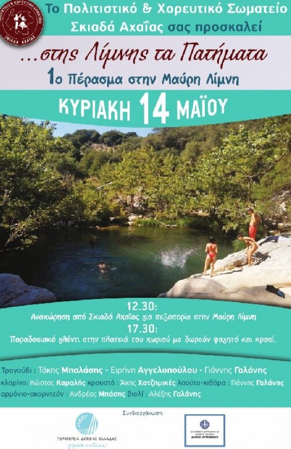 Με στόχο την ανάδειξη της σημασίας της προστασίας του φυσικού περιβάλλοντος, το Πολιτιστικό & Χορευτικό Σωματείο Σκιαδά Αχαΐας με συνδιοργανωτές την Περιφέρεια Δυτικής Ελλάδας και τον Δήμο Ερυμάνθου, διοργανώνει εκδήλωση που συνδυάζεται με περίπατο στη Μαύρη Λίμνη, στο Σκιαδά Αχαΐας.