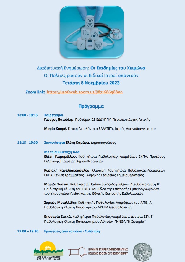 Θέμα: Πρόσκληση στη διαδικτυακή δράση «Οι Επιδημίες του χειμώνα – Οι πολίτες ρωτούν, οι ειδικοί ιατροί απαντούν»