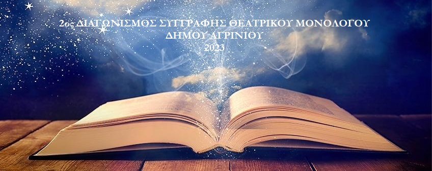 Το Σάββατο 9 Δεκεμβρίου 2023 στις 12:00   θα πραγματοποιηθεί η εκδήλωση απονομής βραβείων και επαίνων στους διακριθέντες  του  2ου Διαγωνισμού  Συγγραφής Θεατρικού Μονολόγου έτους 2023 που διοργάνωσε ο Δήμος Αγρινίου και η  Παπαστράτειος Δημοτική Βιβλιοθήκη.