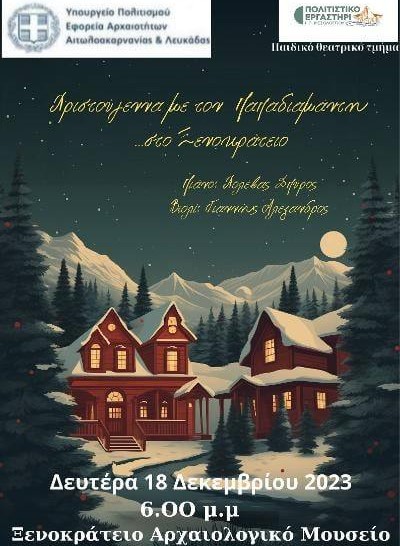Την Δευτέρα 18 Δεκεμβρίου και ώρα 18:00 σας περιμένουμε όλους, μικρούς και μεγάλους, στο Ξενοκράτειο Αρχαιολογικό Μουσείο για την εορταστική εκδήλωση «Χριστούγεννα με τον Παπαδιαμάντη.. στο Ξενοκράτειο», σε συνδιοργάνωση του Πολιτιστικού Εργαστηρίου Ιεράς Πόλεως Μεσολογγίου και της Εφορείας Αρχαιοτήτων Αιτωλοακαρνανίας και Λευκάδος.