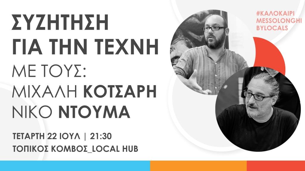 Σας περιμένουμε να ανταλλάξουμε απόψεις και ιδέες αλλά και να γνωρίσουμε καλύτερα τους δύο τοπικούς καλλιτέχνες.