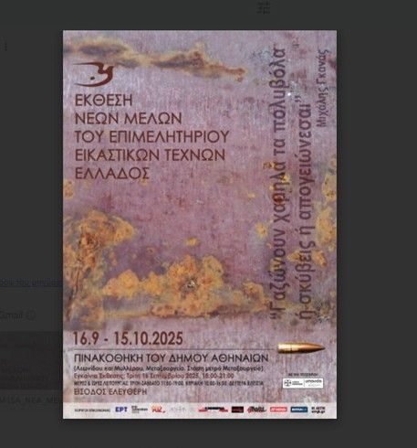 Ναύπακτος, 15 Σεπτεμβρίου 2025 - Ο Αιτωλοακαρνάνας καλλιτέχνης με την μεγάλη δημιουργική πορεία στο εξωτερικό και το προσωπικό εικαστικό του στίγμα, Γιάννης Αρτινόπουλος, συμμετέχει στην Έκθεση του Επιμελητηρίου Εικαστικών Τεχνών Ελλάδος που θα πραγματοποιηθεί στην Αθήνα το διάστημα 16 Σεπτεμβρίου – 15 Οκτωβρίου 2025, στην Πινακοθήκη του Δήμου Αθηναίων.