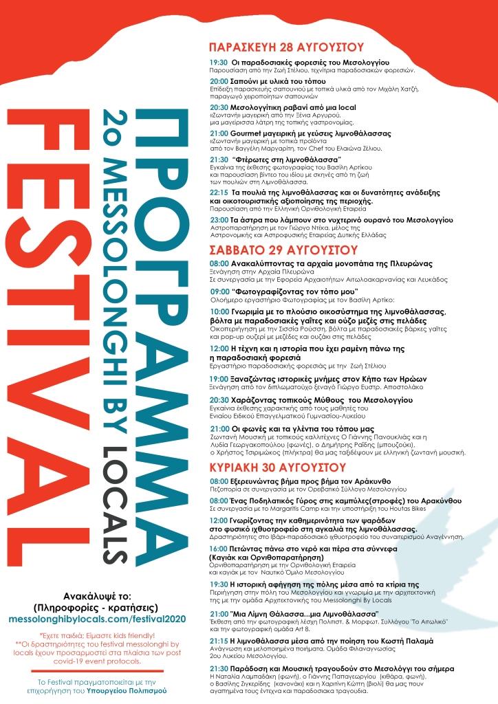 Πρόγραμμα 2oυ Messolonghi by locals Φεστιβάλ, 28-29-30 Αυγούστου 2020 στην πόλη του Μεσολογγίου