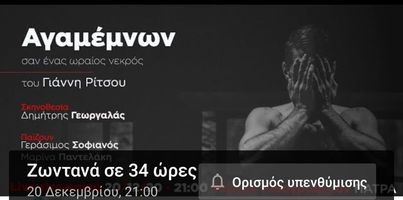 Η Περιφέρεια Δυτικής Ελλάδας συνδιοργανώνει και συμμετέχει στη θεατρική παράσταση «Αγαμέμνων του Γιάννη Ρίτσου» στο πλαίσιο της κοινής διαδικτυακής δράσης με το "Θέατρο του Λόγου".